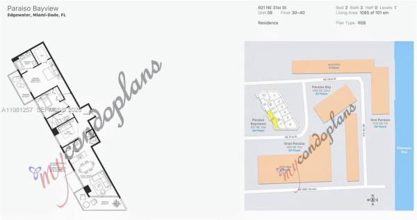 Spacious 1, 085 sq ft high-floor residence on the 32nd floor of a 46-story tower with spectacular water, bay, and skyline views at paraiso bayviews in the highly desirable edgewater neighborhood. This sun-filled 2-bedroom, 2-bath + den unit features southwest exposure, offering beautiful natural light and sunset views over biscayne bay and the miami skyline.