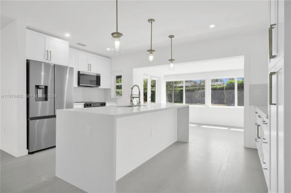 Completely updated home for rent in south miami. 3bed/2.5bath, this meticulously updated home sits in the middle of a quiet low traffic street with mature trees on an oversized lot. Updates include a new roof (2026), modern kitchen with white solid wood cabinets and stainless steel energy efficient appliances, fully updated baths with high end finishes and elegant fixtures. Large functional kitchen island equipped with additional storage and double waterfall quartz counter tops. Large scale porcelain tile throughout, recessed lighting, covered patio, huge driveway, exterior lighting, mature privacy hedge, and expansive outdoor green spaces. Centrally located just over a mile from the university of miami, 20 minutes from miami international airport, 10 minutes from dadeland mall, and just over a half hour to brickell. This home is sure to impress, schedule your appointment today! Contact listing agent for showings and additional information.