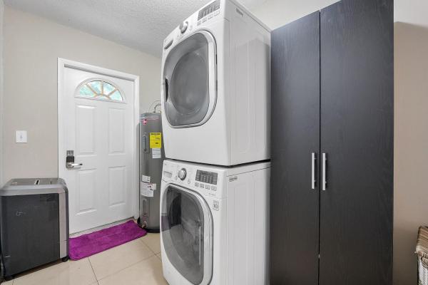 Spacious updated kitchen with quartz countertops, stainless steel appliances, and walk-in pantry. Dedicated laundry room.