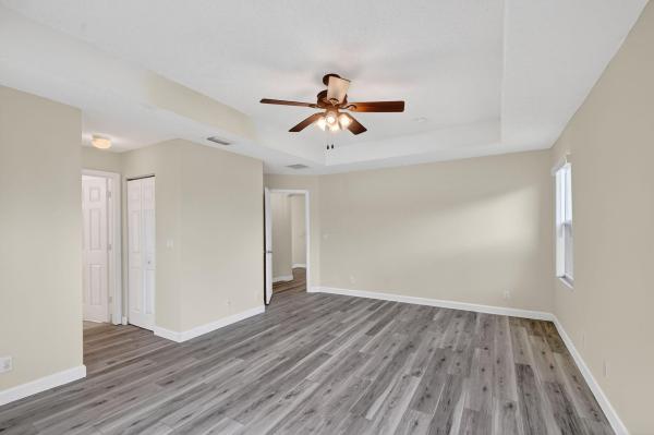 Available immediately experience resort-style living in the prestigious gated community of river bridge. This meticulously updated single-family home offers an ideal blend of comfort, style, and functionality, featuring 3 bedrooms, 2 bathrooms, a 2-car garage, and an extended living area. Upon entry, abundant natural light floods the interior, accentuated by soaring vaulted ceilings and elegant large-format tile flooring throughout. The home boasts high-end lighting fixtures that enhance its sophisticated ambiance. The chef's kitchen is a standout, designed as a spacious open-concept space perfect for entertaining. It is equipped with premium finishes, including stone countertops, stainless steel appliances, and ample cabinetry for storage and preparation. Both bathrooms have been tastefully renovated to modern standards. The two guest bedrooms are generously sized and conveniently share access to the second full bathroom. Bathed in natural light from multiple windows, the master bedroom includes a luxurious ensuite bathroom featuring an oversized separate shower with upscale plumbing fixtures, complemented by a large walk-in closet with custom built-ins. Step outside to your private, screened-in paved patio--an ideal setting for morning coffee or evening relaxation amid peaceful surroundings. Additional conveniences include a full-size laundry room with a utility sink, direct access to the 2-car garage, and attic storage accessible via pull-down ladder. The rent also includes high-speed internet, cable television, lawn maintenance, and full access to the community's exceptional amenities: multiple pools, basketball court, tennis and pickleball courts, shuffleboard, fitness center, and community room. Round-the-clock gated security with 24/7 guard presence provides added peace of mind. Don't miss this exceptional opportunity--schedule your private showing today.