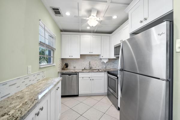 Rarely available first floor corner unit. Newer cabinets with granite counter tops. Main living area and second bedroom feature ceramic tile and wood tone laminate flooring. The amenities include basic cable tv, internet and wifi. Resort style living featuring fitness center, live shows, movies buses, bingo, card and game rooms, trips, tennis, pickleball, water aerobics, friday night dances and more. Every section has thier own pool plus indoor and outdoor pools at the club house close to shopping and restaurants. Don't forget to check out the clubhouse