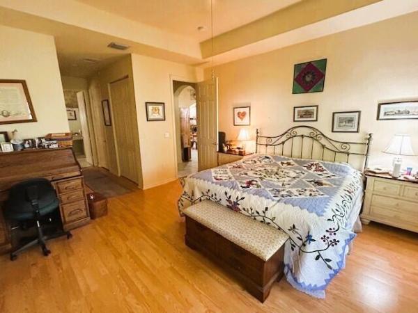 Popular eaton iv model in the estate section of cascade lakes. .This model has 3 bedrooms & a hobby room. This home is situated on a beautiful lot on middle of the lake. It has an enormous patio that is 31' by 40'. It has a north south exposure. Cascade lakes has one of the finest amenity packages including indoor/outdoor pool, state of the art fitness center, ballroom for shows & functions, cardrooms, library, billiard room, & arts & crafts room. Extremely active tennis & pickleball community with tennis & pickleball pros on staff. Cascade lakes has very high reserves. There is a 6 month capital contribution due at closing.