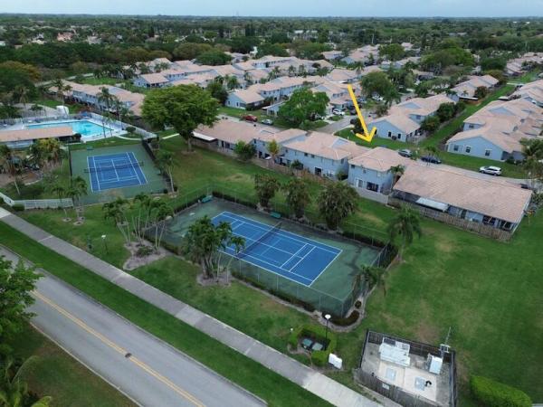 Welcome to this beautifully maintained one story 2-bedroom, 2-bath villa located in the country fair community of boynton beach. This home features a bright and open floor plan with vaulted ceilings that enhance the sense of space and natural light. The spacious living and dining areas create an inviting atmosphere perfect for both everyday living and entertaining. The kitchen is thoughtfully updated with granite countertops, solid wood cabinetry, and ample prep and cabinet space, combining style and functionality. Throughout the home, you’ll find plenty of closet space, providing exceptional storage and organization options. The bedrooms feature laminate flooring for a clean, modern look and easy maintenance. A unique feature of this home is the attached one-car garage, currently being utilized as an additional bedroom, making it ideal for guests, a home office, or extended family. This space can be easily converted back to a traditional garage if desired, offering flexibility to suit your needs. The home also includes an in-unit laundry area for added convenience. Step outside to enjoy the corner charming backyard space, which offers both open patio areas and screened-in portions — perfect for relaxing, entertaining, or enjoying florida’s beautiful weather year-round. This corner placement is a plus and only one block away from community amenities. Residents of this well-kept community benefit from beautifully landscaped grounds, gated entry, sidewalks, and amenities such as a sparkling pool and tennis courts. Ideally situated within walking distance to nearby shops, grocery stores, restaurants, gyms, and daycares, this location makes daily living effortless. Located in a welcoming, well-established neighborhood, this property offers comfort, convenience, and long-term value. Whether you’re searching for a primary residence, seasonal retreat, or investment opportunity, this townhome delivers lifestyle and flexibility in one exceptional offering. Schedule your private showing - the home is currently occupied by renters and becomes available in april.