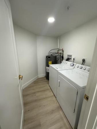 Three additional bedrooms are well proportioned and thoughtfully positioned. Secondary bathrooms reflect the same level of craftsmanship with frameless glass enclosures, decorative tile selections, and led lighted anti-fog mirrors. A spacious laundry room with custom cabinetry and a utility sink adds everyday convenience, while upgraded interior doors, custom baseboards, detailed moldings, and a glass front entry door highlight the home's attention to detail.