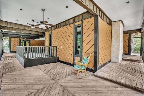 An exceptional, fully renovated retreat tucked behind a tranquil nature preserve. This stunning home offers a blend of modern luxury and serene privacy, creating the perfect sanctuary for everyday living and effortless entertaining. Step inside to discover an updated interior featuring a brand new chef's kitchen, custom bar, and beautifully redesigned bathrooms. High ceilings and gorgeous exposed wood beams elevate the living room, adding warmth, character, and an inviting sense of openness. The seamless flow of the home extends outdoors to your private backyard oasis, where peaceful views of the untouched preserve make every moment feel like a getaway. Luxurious, stylish, and set in an ideal natural setting is move-in ready and designed to impress at every turn. Surrounded by tropical foliage and fairways, the home is located in seagate golf club where membership is optional not mandatory. Dining room chandelier in photos does not convey and will be replaced.