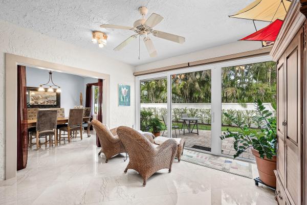 Welcome home to this charming four-bedroom, three-bathroom, two-car garage pool home with a fully fenced yard, ideally located just steps from the intracoastal waterway in the heart of lantana's quaint coastal community. Lovingly maintained and offered by only the second owner, this property blends comfort, character, and an exceptional location. Situated on a desirable corner lot, the property features an oversized circular driveway framed by tall, lush palm trees and privacy hedges on both sides, creating a welcoming and secluded setting. As you enter, you'll immediately notice the character of the home, highlighted by terrazzo flooring throughout the main living areas, updated fixtures, recessed lighting, and impact windows that allow natural light to pour in. The updated kitchen is designed for both everyday living and entertaining, featuring a large corian peninsula with bar-top seating, an oversized dual sink with updated hardware and disposal, solid wood shaker cabinetry, decorative brick backsplash, stainless steel appliances, and abundant natural light. Expansive sliding glass doors offer beautiful views of the pool and patio area, creating seamless indoor-outdoor flow. The dining area opens directly off the kitchen and features wood-look vinyl flooring and surrounding sliding glass doors that lead to the backyard oasis. The spacious living room offers terrazzo flooring, updated fixtures and trim, and an abundance of natural light. The primary bedroom is nicely sized and features terrazzo flooring, updated fixtures, and ample closet space with built-ins. The primary bathroom has been tastefully updated with tile flooring, recessed lighting, and an oversized walk-in shower tiled from floor to ceiling with decorative inlay, a built-in bench, and updated hardware. All three secondary bedrooms are well-sized and filled with natural light, with two featuring french doors that open directly to the covered patio and pool area. One of the secondary bathrooms include updated tile flooring, bamboo wood decorative wall inlay, a solid wood vanity with granite countertop, pendant lighting, and a fully tiled tub/shower combination with decorative tile accents. The other secondary bathroom features a large walk-in shower, fully tiled from floor to ceiling and a door leading to the patio making this cabana bath extremely useful. Step outside to your private florida oasis, complete with two separate covered patios and an oversized, fully screened-in pool, ideal for entertaining or relaxing year-round. A dedicated laundry room is conveniently located off the garage. All of this is located in an unbeatable coastal setting, within walking distance to local favorites such as the old key lime house, just over a mile from i-95, and only 15 minutes to the shops and dining of downtown delray beach or the elegance of worth avenue in palm beach.Don't miss the opportunity to own a slice of old florida charm perfectly blended with modern comfort and an exceptional coastal lifestyle. Schedule your private showing today!