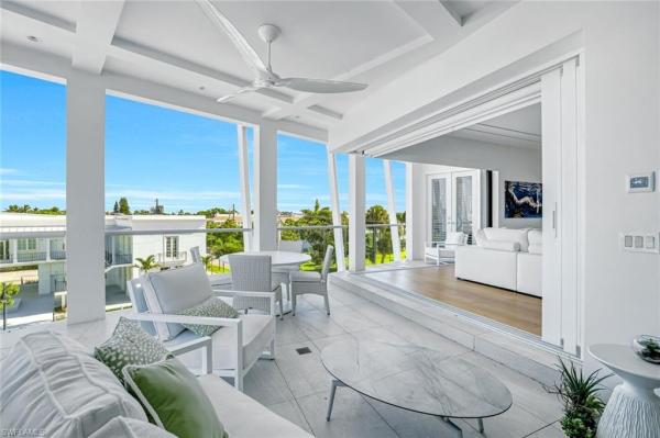This like-new custom coastal-transitional residence showcases the finest in design, craftsmanship, and livability. Spanning over 7, 000 sf with 1, 600 sf of outdoor living, the home blends casual elegance with sophisticated detail. European wide-plank oak floors, custom cabinetry, extensive millwork, and tongue-and-groove ceiling treatments set a refined tone throughout. The open floor plan emphasizes indoor–outdoor living, with soaring ceilings and walls of pocketing glass that flow to a resort-style outdoor area complete with pool, spa, fireplace conversation lounge, and a fully equipped summer kitchen. The gourmet kitchen leaves nothing to be desired, featuring floor-to-ceiling custom cabinetry, quartz countertops, a large island, a hidden walk-in pantry, wolf and miele appliances, dual wine refrigerators, and a stand-alone ice maker. The first-floor primary suite offers a luxurious bath, his-and-hers walk-in closets, and direct access to the lanai. Upstairs, a loft-style family room, morning kitchen, second laundry, media room, and three en-suite bedrooms all open to a west-facing terrace for sunset views. Additional features include a large study, powder bath, pool bath, oversized three-car garage, control4 smart home automation, electric roll-down shutters, and lush tropical landscaping. Located in the heart of olde naples, this home is within walking distance to the beach, 5th avenue south, 3rd street, crayton cove, and cambier park.