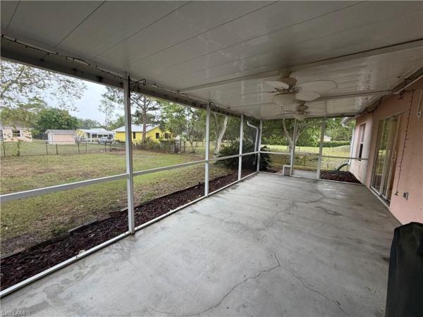 Sliding glass doors open to a covered lanai, perfect for indoor outdoor living. The split floor plan provides privacy in the primary suite, while additional bedrooms offer flexibility for guests or a home office. Ceiling fans and neutral finishes throughout enhance comfort and efficiency.