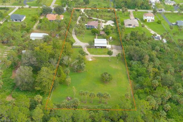 This private 2.58-acre gated estate in golden gate estates offers a rare blend of modern living, wellness-focused design, agricultural capability, and exceptional privacy. Located on a peaceful no-outlet road for enhanced tranquility, the property includes a 2, 644 sq. Ft. Main residence plus a 995 sq. Ft. Guesthouse built in 2025, creating a versatile multi-generational layout with two separate gated entrances. The main home features an open floor plan with 12-foot tray ceilings, 4 bedrooms & 4 bathrooms, a dual-sided fireplace connecting the living and dining areas, and a spacious kitchen equipped with a large waterfall granite island, double oven, stainless-steel appliances, and custom cabinetry. The primary suite includes walk-in closets and a well-appointed bath with upgraded tilework and high-end bidets, which are also installed in all additional bathrooms. A whole-property reverse osmosis filtration system provides purified water to both the main home and guesthouse. The separate 2-bedroom, 1-bath guesthouse offers a full kitchen, living room, modern finishes, and its own private gate, creating ideal accommodations for extended family, guests, or rental flexibility.