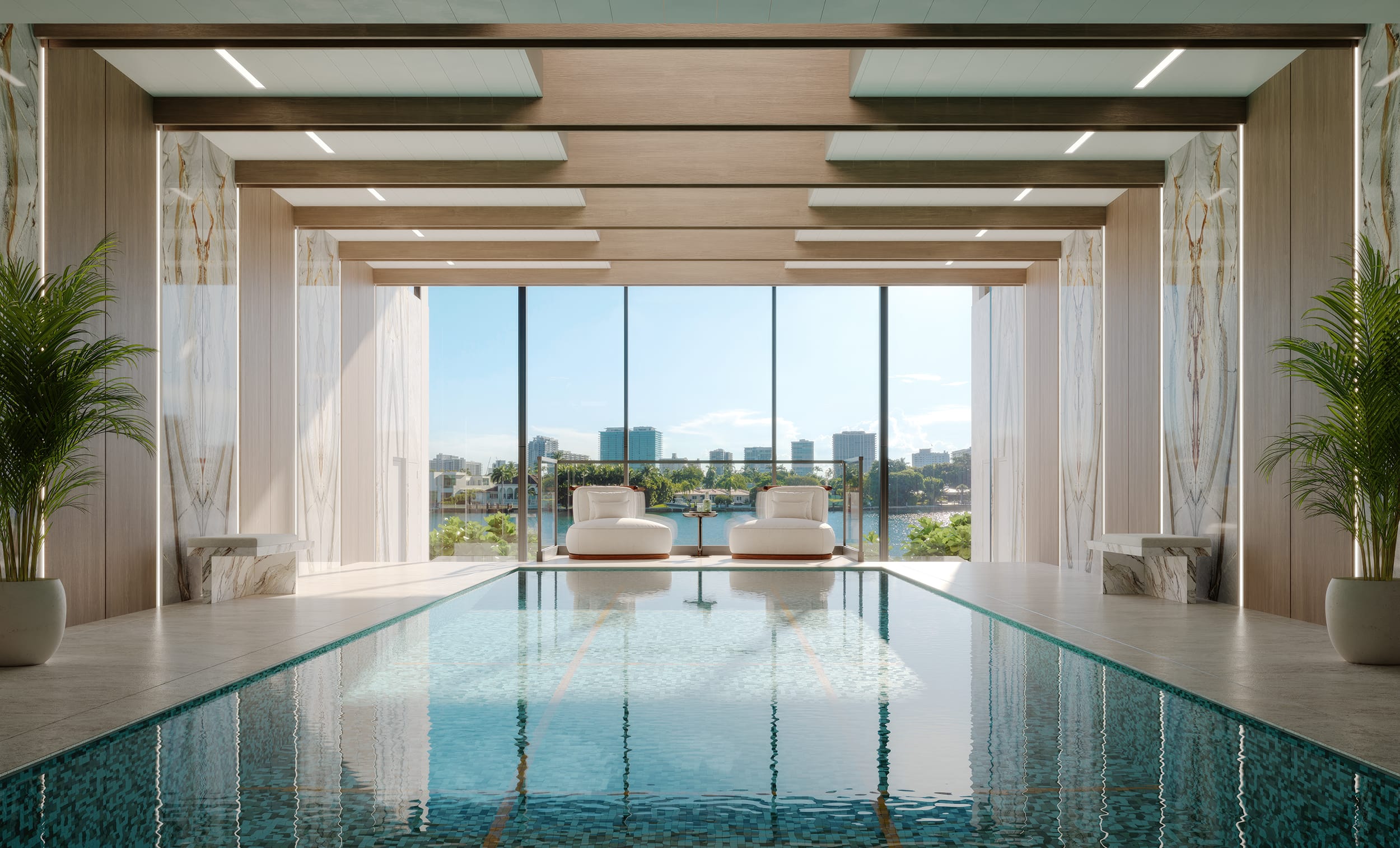 With private and semi-private elevator entrances leading to individual residence foyers, you’re welcome to step inside expansive living areas where the kitchen, dining, and living spaces create the ultimate setting for hosting guests and family gatherings. Private terraces create a harmonious transition from indoor to outdoor living and capture the panoramic waterfront views of Indian Creek and Biscayne Bay. In addition, each residence includes versatile den spaces that can be transformed into an office, media room, staff quarters, or a playroom, ensuring your living space adapts to your every need.
