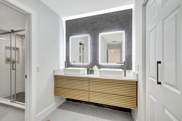 Villa for sale in Greens Of Boca Lago8008 Eastlake Dr, Boca Raton, FL 33433This is not a townhouse but a gorgeous, remodeled 3-bedroom villa featuring 2, 200 square feet of living space under air with a split floor plan. Located in a man-gated 55+ community, the property includes a new roof installed in 2024, no new assessments and a maximum light inside due to the cathedral ceiling and a skylight in kitchen area, a spectacular designer entrance greets you, leading to a very large main living area with 18-foot high white ceilings with wood beams. - a media room complete the large living area with golf view and access to a gigantic screened patio a separate area with two large guest bedrooms with sliders leading to a private patio and their bathroom equipped with shower/tub. - a huge master suite features a walk-in closet with a quartz island and a spectacular bathroom with 2 showers behind glass sliders. Also there is a wet bar and under-air storage area for fragile items. - an open-concept kitchen equipped with stainless steel appliances, a large quartz waterfall island, and a dining area with a skylight. - designer window treatments on all windows and sliders. Recessed dimmable led lights in all rooms, designer ceiling fans. 1 car garage and 3 cars parking space plus many guest parking across the villa this is a gem waiting for you. Pool is 3 minutes walking across the street.