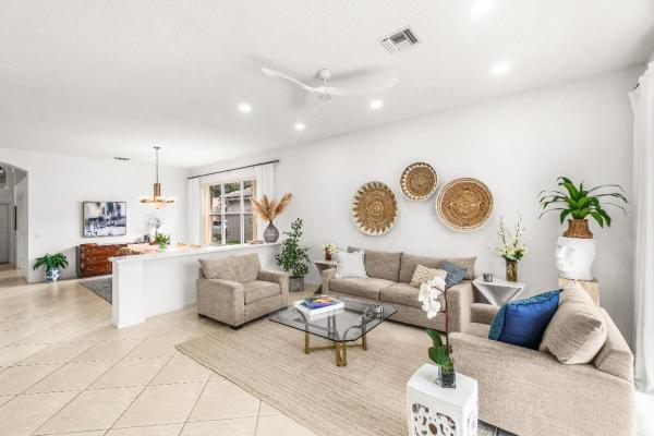House sold in Valencia Isles11278 Kona Ct, Boynton Beach, FL 33437Nestled in a quiet cul-de-sac, this stunning 4-bedroom, 2.5-bath home boasts the largest yard in valencia isles, offering unparalleled space and privacy. A screened enclosed entrance leads to double doors opening into a foyer, setting the stage for this elegant residence. The formal living room features a coffered ceiling, abundant natural light, and a sliding door to the expansive screened patio—perfect for indoor-outdoor living. The formal dining room impresses with vaulted ceilings and arched windows, adding a touch of sophistication. The kitchen is a chef's delight, complete with granite countertops, a matching backsplash, under-cabinet lighting, stainless steel appliances, a pantry, a breakfast nook, and a convenient snack bar. Adjacent, the spacious family room offers vaulted ceilings, high-hat lighting, plantation shutters, and an airy, open feel.