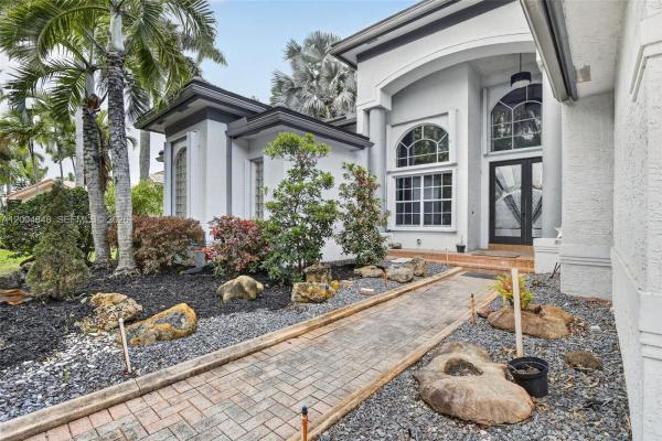 Spacious & elegant tradewinds model, 5 br/3.5 ba waterfront/pool home on wetland preserve lake in premium gated community. Open layout features large, separate living & family rooms, both w/ soaring ceilings & amazing water views, perfect for entertaining or everyday family life. The luxurious remodeled kitchen offers marble countertops, stainless steel appliances, custom wood cabinetry w/ hood & pullouts. Spacious primary suite has new luxury vinyl wood plank flooring, dual walk-in closets & renovated bath. Enjoy resort-style living w/ pool/spa, an oversized screened patio, lush landscaping, lighting, & fenced backyard along a scenic wetland preserve lake with privacy (no facing homes). New garage doors ('26), new roof ('21) and newly resurfaced and tiled heated pool/spa ('24). ............................................................................................................................................................ The estates of stirling lake is west broward's "best kept secret", a premium gated community nestled off the beaten path, just off stirling road and dykes road, giving it quick access to the major i-75 and i-595 thoroughfares. Community has newly paved streets, lighted tennis, playground, and is near a-rated schools. Key home upgrades include: luxurious full kitchen remodel with marble countertops, upgraded wood cabinets, stainless appliances, double sink. Additional upgrades and renovations throughout home, including luxury vinyl wood flooring in primary suite, updated living room, family room, and baths. Oversized, private, screened back patio with large automated sunsetter shade overlooks the fenced backyard with mature landscaping on beautiful private lake along a protected wetland preserve...Can never build across the lake!! Move-in ready and built for luxury living.