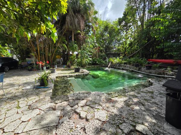 One of the most unique properties in florida city. This tropical oasis on over 14, 000 sqft lot has a main house with 2 living areas, along with a duplex containing 2 studio apartments. The focal point is the large natural fresh water spring fed coquina stone pool with fountains. The pool water does not require any filtration and is easy to maintain. Located in walking distance to w. Palm dr, and the miami busway. Close to shopping, dining, homestead raceway and florida keys. Truly a one of a kind opportunity. There is a 14000 sqft lot to the west available as well making this land opportunity approximately 30, 000sqft total.