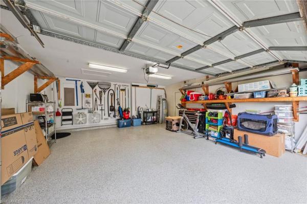 value with an epoxy-coated floor (2023), built-in storage and shelving, and a myq app-enabled