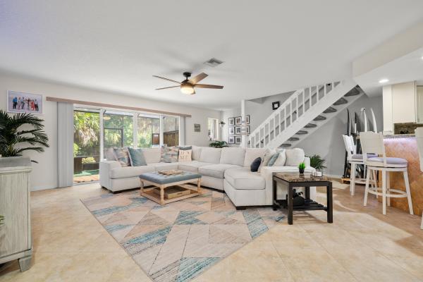 open living flows to a private patio. Spacious bedrooms and balcony upstairs. Community offers a pool, tennis, pickleball, and clubhouse. Live steps from your private beach in breakers landing!
