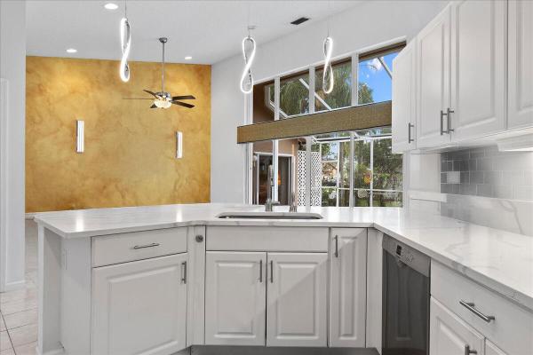 Beautifully maintained and truly move-in ready, this 3-bedroom, 2-bathroom home with a 2-car air-conditioned garage is located in the highly sought-after, all-ages community of river bridge. This 24/7 manned gated community is known for its well maintained grounds and amenities. This home offers peace of mind with a 2020 roof and a 2026 water heater. A charming screened front porch welcomes you in, setting the tone for the bright and inviting interior. Inside, you'll find an open layout with neutral tones, elevated ceilings, and recessed lighting. Tile flooring flows seamlessly throughout the main living areas. The updated eat-in kitchen features updated cabinetry with new hardware, newer stainless steel appliances, and a large island, perfect for entertaining or casual dining. The spacious primary suite offers double walk-in closets with custom organizers. The ensuite bathroom features dual vanities, a walk-in shower, a relaxing soaking tub, a linen closet, and a bidet. Step outside to enjoy the florida lifestyle year-round from your covered and screened-in patio. The laundry area is conveniently located in the garage and includes a brand-new samsung washer and dryer. River bridge offers resort-style amenities and is conveniently located near shopping, dining, and just minutes from okeeheelee park. Hoa includes lawn maintenance, cable, internet, 24-hour manned gate and security.