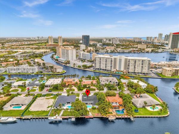 Nestled within the exclusive guard-gated waterfront enclave of golden isles in hallandale beach, this residence is a true statement of architectural excellence. Positioned on a 16, 000 sf point lot along the intracoastal waterway, this exceptional estate offers the ability to accommodate a 200 ft mega yacht. Spanning 8, 000 sf of meticulously designed interiors, the home features seven bedrooms—five upstairs and two on the main level—plus a private office and fully equipped gym, all crafted with premium materials and custom millwork throughout.The expansive 1, 400 sf primary suite offers ultimate privacy with separate his-and-hers bathrooms and custom closets. Additional highlights include a designer european kitchen, wet bar, wine cellar, elevator, and media room. Outdoors, enjoy 315 feet of water frontage, a brand new concrete dock, no fixed bridges, and a resort-style pool with summer kitchen—perfect for true waterfront living and entertaining. Golden isles is perfectly positioned between fort lauderdale and miami beach, offering the best of both worlds with unmatched value. Close to a+ schools, aventura mall, bal harbour shoppes and just 15 minutes to the open ocean.