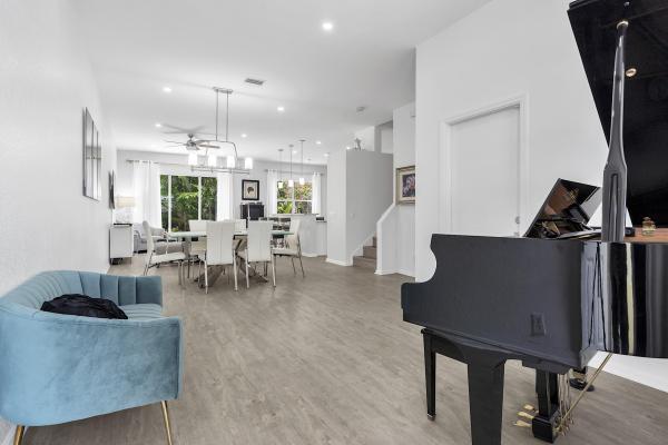 Townhouse sold in Barefoot Cove Townhomes125 Barefoot Cv, Hypoluxo, FL 33462Gated turn-key coastal retreat in barefoot cove stunning key west-inspired waterfront community townhome, just ~2 miles to the beach. This remodeled residence with upgraded floors, kitchen, bathrooms and much more offers a bright open layout with high ceilings and oversized slides. The designer kitchen w/granite/marble counters, custom cabinetry, stainless steel appliances and wine chiller flows into generous living areas. Featuring 2 beds + 2.5 baths, including a spacious primary suite with oversized walk-in closets, dual sinks and separate tub/shower. Enjoy a private patio perfect for outdoor living. One-car garage and extra driveway parking. Storm/accordion shutters, alarm system and more. Hoa includes building, grounds maintenance, wind and flood insurance, gated security and pool