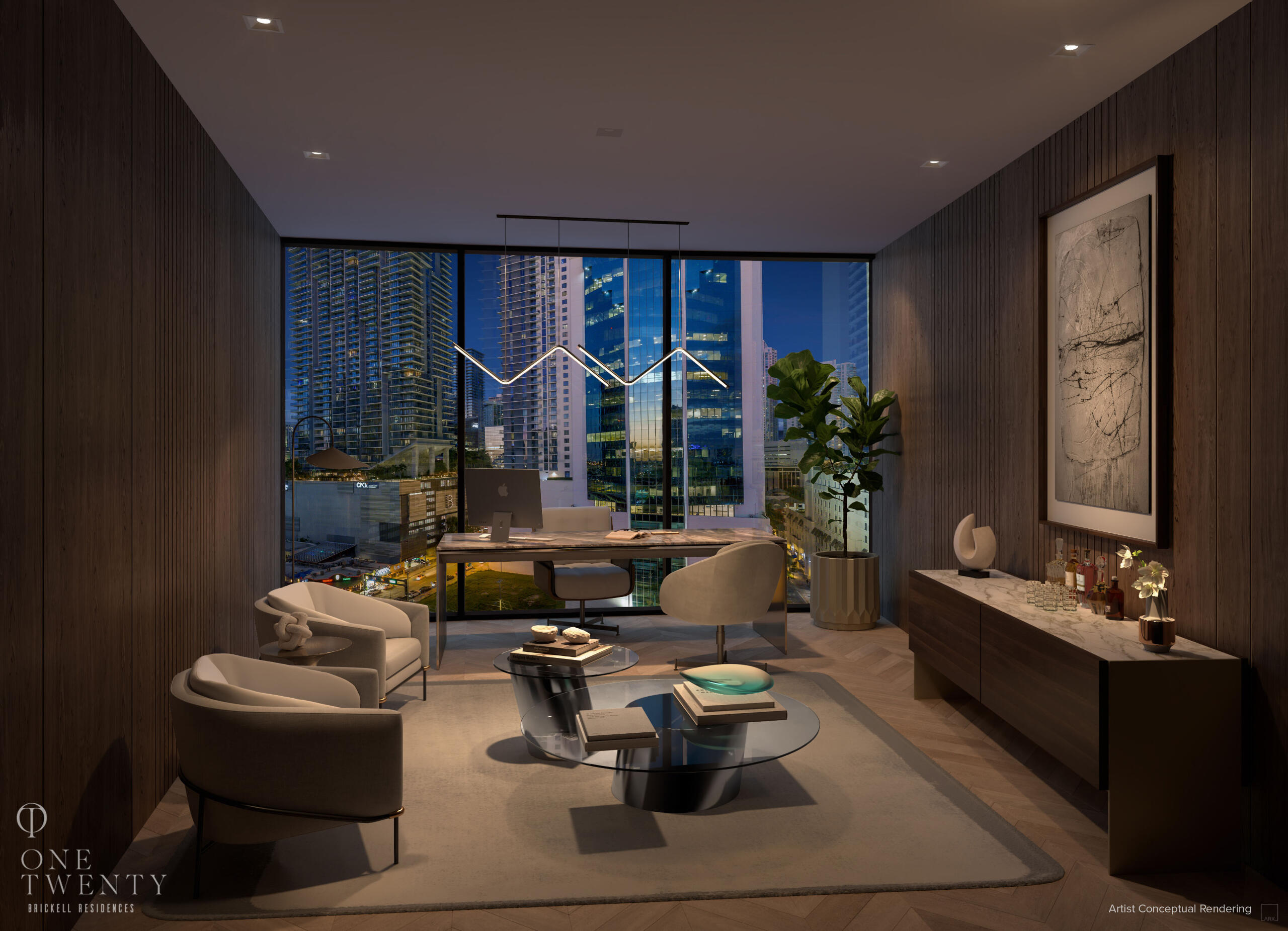 Inspired by the dynamic neighborhood it calls home, One Twenty Brickell Residences are designed with Brickell’s vibrant atmosphere at its core. As a first-of-its-kind offering. each luxury residence will be accompanied by a dedicated office suite. Paired with refined social spaces, dramatic city views, and a dentral locale, One Twenty Brickell offers much more than a collection of sophisticated homes, it reflects an entirely reimagined way of living for the modern cosmopolitan.