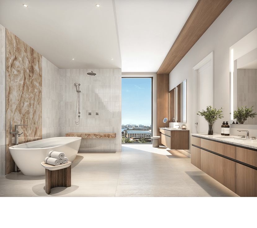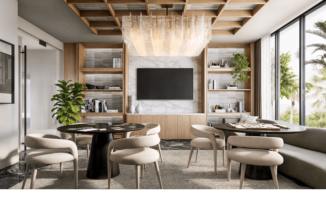 Designed for relaxation and connection, the marina-front lounge features outdoor trellis seating, summer kitchen, and private dining rooms with a chef’s catering kitchen. Residents can unwind in the exclusive club lounge and tasting bar or host gatherings overlooking Venetian Bay.
