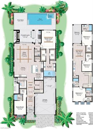 The home sits on a corner lot, offering plenty of room for outdoor living from its saltwater pool/spa, full outdoor kitchen & gas fireplace, custom dolomite bar table, plus an oversized upstairs balcony to watch the sunsets.