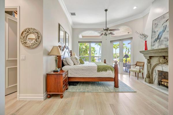 Upstairs, you'll find three additional bedrooms, thoughtfully arranged for both privacy and comfort. Two bedrooms share a beautifully designed bathroom, while the third bedroom boasts its own ensuite bath and private access to a stunning 13' x 36' balcony, where you can take in serene water and garden views.