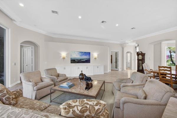 Beautifully renovated in 2025, this elegant bardini ii offers sweeping wide-water and sunrise fazio golf views. The popular great-room floor plan features new large-format porcelain flooring, fresh interior paint, updated lighting, new cabinetry throughout, and all-new viking kitchen appliances including a wine refrigerator. New carpeting in primary, guest, stairway and second floor bedroom, plantation shutters, and a spa-style bath with dual vanities, soaking tub and frameless shower. All bedrooms are ensuite, including a private second-floor suite. Outdoor living is exceptional with a large pool and spa, built-in summer kitchen with tv, spacious patio and covered seating. Impact windows on front and rear, accordion shutters on sides. Sports membership. Welcome to a beautifully renovated bardini ii residence set on one of porto vecchio's most desirable wide-water lots, offering sweeping, 180-degree lake and sunrise fazio #2 fairway views. Completed in 2025, the renovation brings a clean, modern, and elegant aesthetic to this highly sought-after great-room style home. The moment you enter, you are welcomed into expansive open living spaces with soaring ceilings, contemporary lighting, and full-wall sliders framing the exceptional outdoor scenery. The interior has been refreshed throughout with new large-format porcelain flooring, fresh paint from ceiling to baseboards, updated cabinetry and hardware, and new carpeting on the staircase and in the primary suite. The designer kitchen is a showpiece, featuring all-new cabinetry, sleek countertops, and a full suite of viking appliances, including a gas range, refrigerator, microwave, dishwasher, and a viking wine refrigerator. Clerestory windows and a full-height landscape window bathe the space in natural light, creating a bright, inviting atmosphere. The luxurious primary suite offers elegant wall treatments, plantation shutters, tranquil views of the water and fairway, and plush new carpeting. The spa-inspired primary bath includes dual vanities with new cabinetry, a soaking tub, frameless glass shower, tall mirrors, and sophisticated finishes. All bedrooms in the home are ensuite. A beautifully appointed first-floor guest suite doubles perfectly as an office, while an additional main-level guest suite includes an updated bath and new plush carpet. The private second-floor suite provides ideal accommodations for family or long-term guests, complete with its own full bath and plantation shutters. Outdoor living is exceptional. The large pool with raised spa sits against a backdrop of wide water and sweeping golf views. A built-in outdoor kitchen with stainless grill, granite counters, and mounted tv makes entertaining effortless. The expansive paver patio and covered lanai offer multiple areas for dining, lounging, and enjoying the views. The exterior has also been refreshed with new paint, contemporary lighting, manicured tropical landscaping, a paver driveway, and impact windows on the front and rear elevations, with accordion shutters along the sides. ; highlights " renovated in 2025 - modern and move-in ready " premier wide-water and golf views " bardini ii great-room style floor plan " all-new viking kitchen appliances + viking wine refrigerator " new cabinetry in kitchen, baths, and laundry room " new porcelain flooring throughout the main level " new carpeting in the staircase and primary suite " spa-inspired primary bath with soaking tub & frameless shower " all bedrooms are ensuite (including a private upstairs suite) " outdoor kitchen with grill, storage & tv " large pool with raised spa and expansive patio " impact windows (front & rear) + accordion shutters on sides " freshly painted interior and exterior, new lighting, updated garage