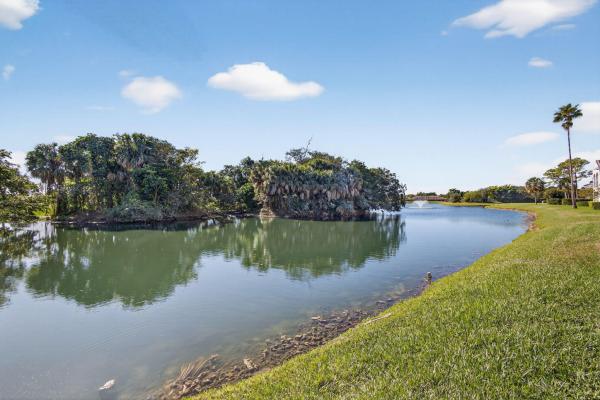 Fully renovated in 2024, this stunning first-floor end-unit 3br/2ba condo with a 1-car garage offers 1, 797 sf under a/c and showcases a complete, top-to-bottom transformation. Highly sought after for its added privacy and natural light, the end-unit positioning enhances the home's spacious feel. Renovations include all new flooring, walls, ceilings, cabinetry, lighting, data/network cabling, hvac, paint, appliances, kitchen and baths, full impact windows and doors, window treatments, custom closet systems, screened porch, and epoxy garage flooring. Large-format natural stone-look tile and a warm buff-toned palette create a cohesive, modern aesthetic throughout. The open-concept layout seamlessly blends the living, dining, and kitchen areas, enhanced by abundant recessed lighting and oversized sliding glass doors that flood the home with natural light. The designer kitchen features dark walnut shaker cabinetry, marble-look quartz countertops with waterfall edge and seating, stainless steel appliances including a wall oven, and a built-in wine cooler. A sunlit eat-in area is surrounded by windows overlooking the private courtyard and side garden. The primary suite offers a walk-in closet and spa-inspired en-suite bath with walnut vanity, cream-toned quartz, dressing table, and an expansive glass-enclosed shower finished in floor-to-ceiling marble-look tile with slate and seafoam veining. Two additional guest bedrooms are generously sized, one currently utilized as an office/gym with sliding door access to the screened patio. Enjoy indoor-outdoor living from the screened patio accessible from both the living room and guest room, featuring premier golf views. Perfectly positioned on the 7th tee box of the pga national championship course (the champion), the residence enjoys sweeping vistas of five golf holes, along with tranquil lake and bird sanctuary surroundings. A private courtyard entry and covered porch are framed by lush tropical landscaping, completing this rare blend of luxury, privacy, and resort-style living.