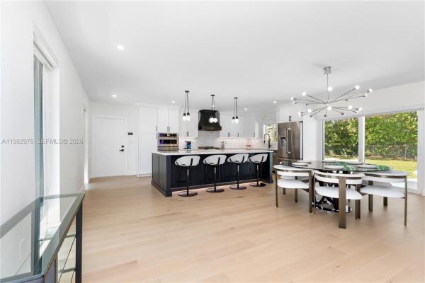 Step into unparalleled luxury with this fully remodeled 4-bedroom, 4-bath home on a half-acre lot in a tranquil, park-like setting. Designed for modern elegance and effortless entertaining, the residence features two expansive primary suites, perfect for multigenerational living or pampered guests. Sunlight streams through impact hurricane windows, while a metal roof and new a/c ensure comfort and peace of mind. Gleaming engineered wood floors flow throughout, complemented by new pvc waste lines and high-end finishes. The gourmet chef’s kitchen is a true centerpiece, with custom cabinetry, a dramatic 10-foot quartzite island, a designer vent hood, two dishwashers, two refrigerators, and dual ovens—one gas, one electric—ideal for hosting family and friends. Bathrooms shine with premium toto toilets, including two with bidets. Every room offers custom closet organizers and electric blinds, while ev-ready infrastructure adds modern convenience. Outside, enjoy a newly refinished diamond brite pool framed by lush landscaping, with an automatic sprinkler system maintaining the grounds. This home effortlessly blends indoor elegance with outdoor living, offering a private oasis that embodies upscale south florida lifestyle. Move-in ready and crafted for those who appreciate sophistication, comfort, and entertaining at the highest level.