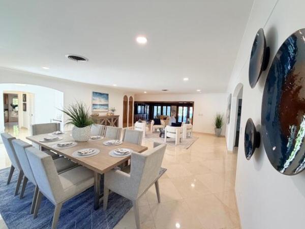 Magnificent waterfront estate in sea ranch lakes, a gated home within the exclusive 24-hr guard-gated community with private beach club. Set on a 22, 000+ sq. Ft. Lot with 80 ft. Of direct intracoastal frontage, this residence boasts lush landscaping, a resort-style pool, and expansive outdoor spaces designed for entertaining. A huge roof terrace offers panoramic water views. Inside, the flow-through plan includes 7 rooms, 5 full + 2 half baths, and an italian imported kitchen with new countertops, built-in bar, and extendable island. Additional upgrades include a state-of-the-art facial recognition security system, outdoor kitchen with new counters and bar, master suite with custom closet, and updated garage with fridge, beverage fridge, and wall organization panels.