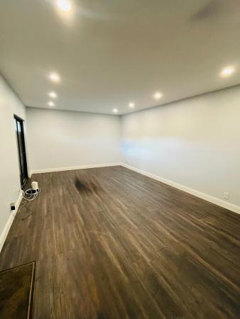 The master bedroom offers ample space and a walk-in closet complete with a custom organizer. The ensuite bathroom features a double sink vanity and a stylish step-in shower, providing a serene escape.