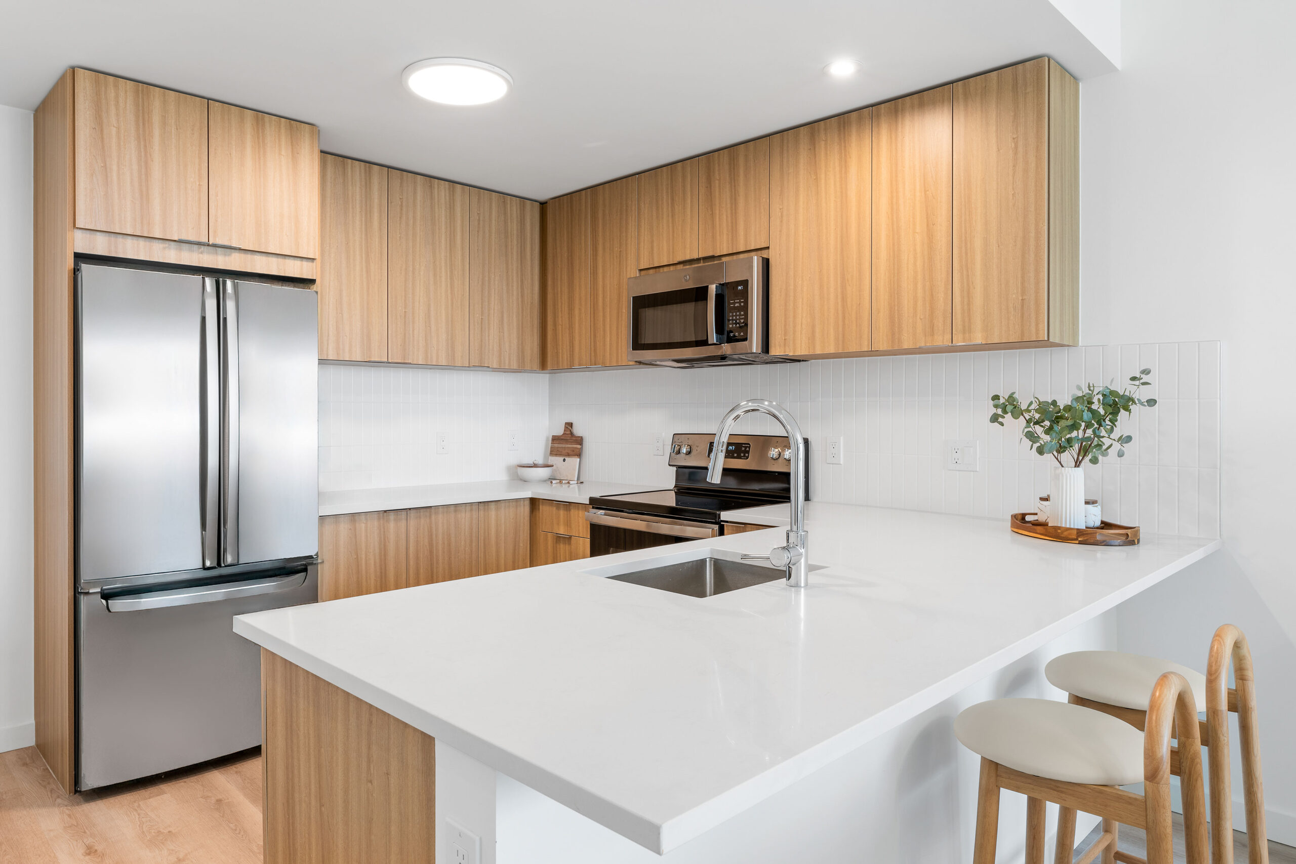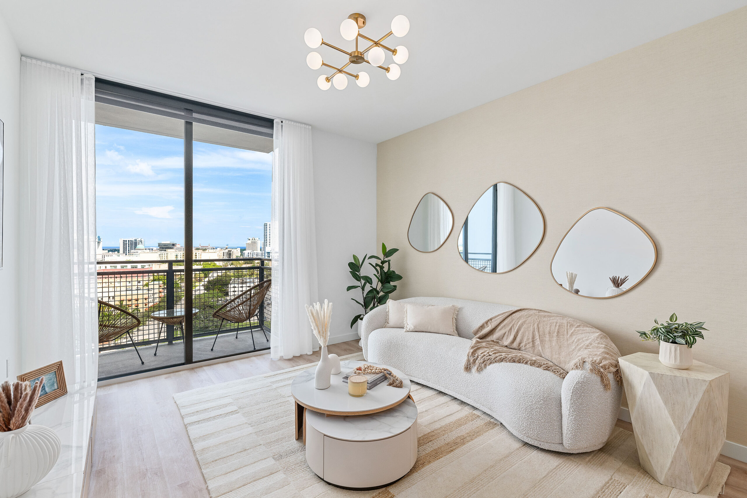 Lumaire offers premium level quality and design throughout its spacious Studio, 1-, 2-, and 3-bedroom luxury apartments. Oversized windows flood residences with natural light, and present sweeping vistas that stretch to the horizon, setting a significantly higher living standard. The curated mix of materials and finishes are modern yet warm, with select hardware, precision millwork, and sophisticated color palettes. Residences with seamlessly integrated balconies provide true indoor-outdoor living.