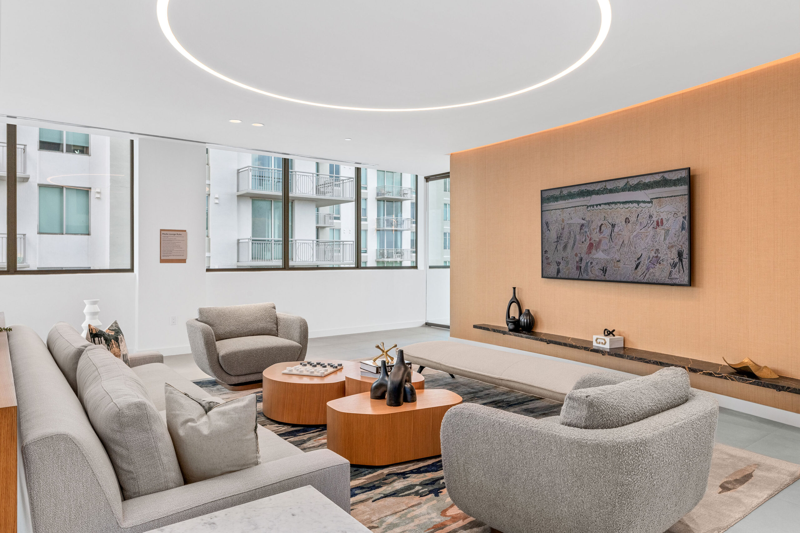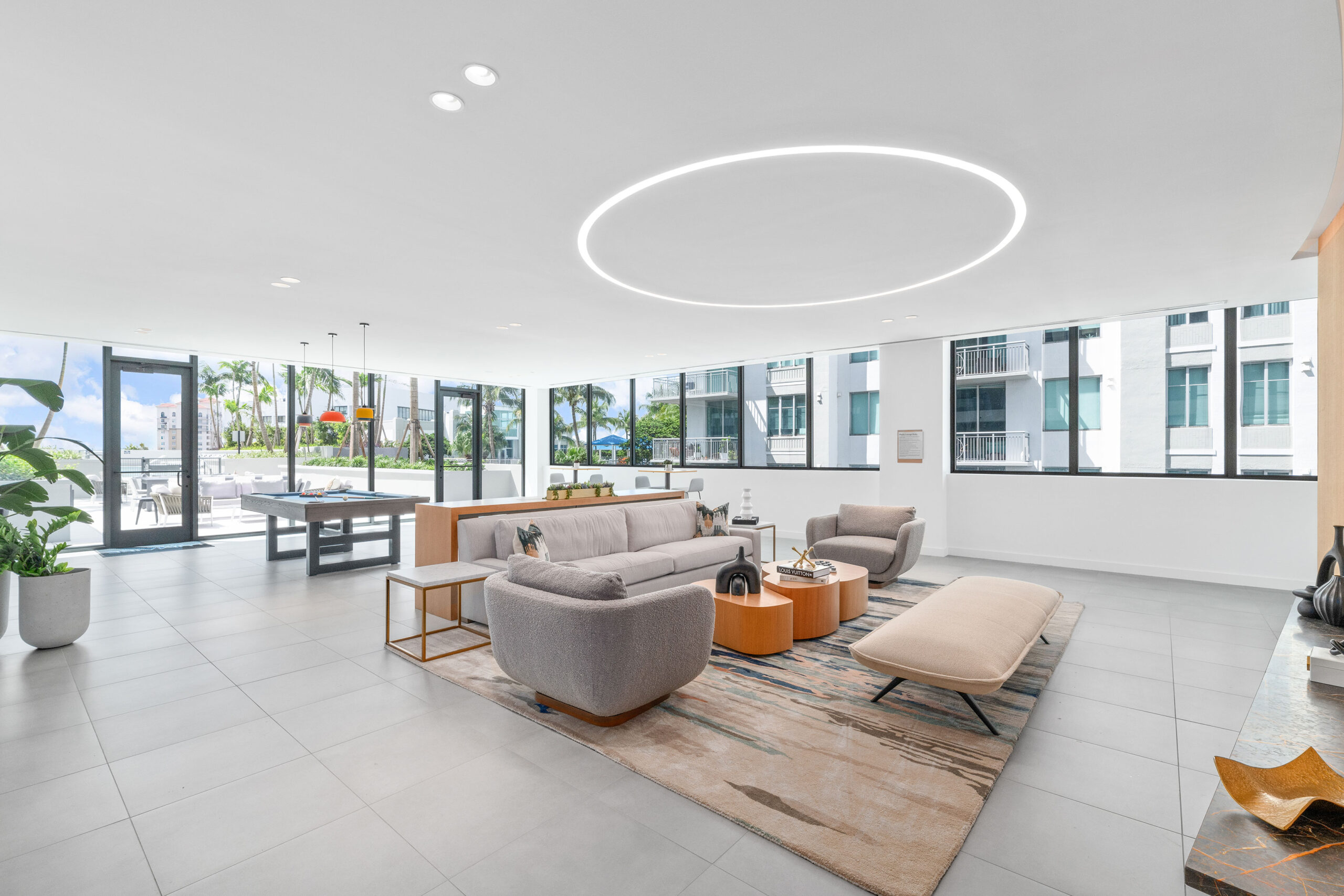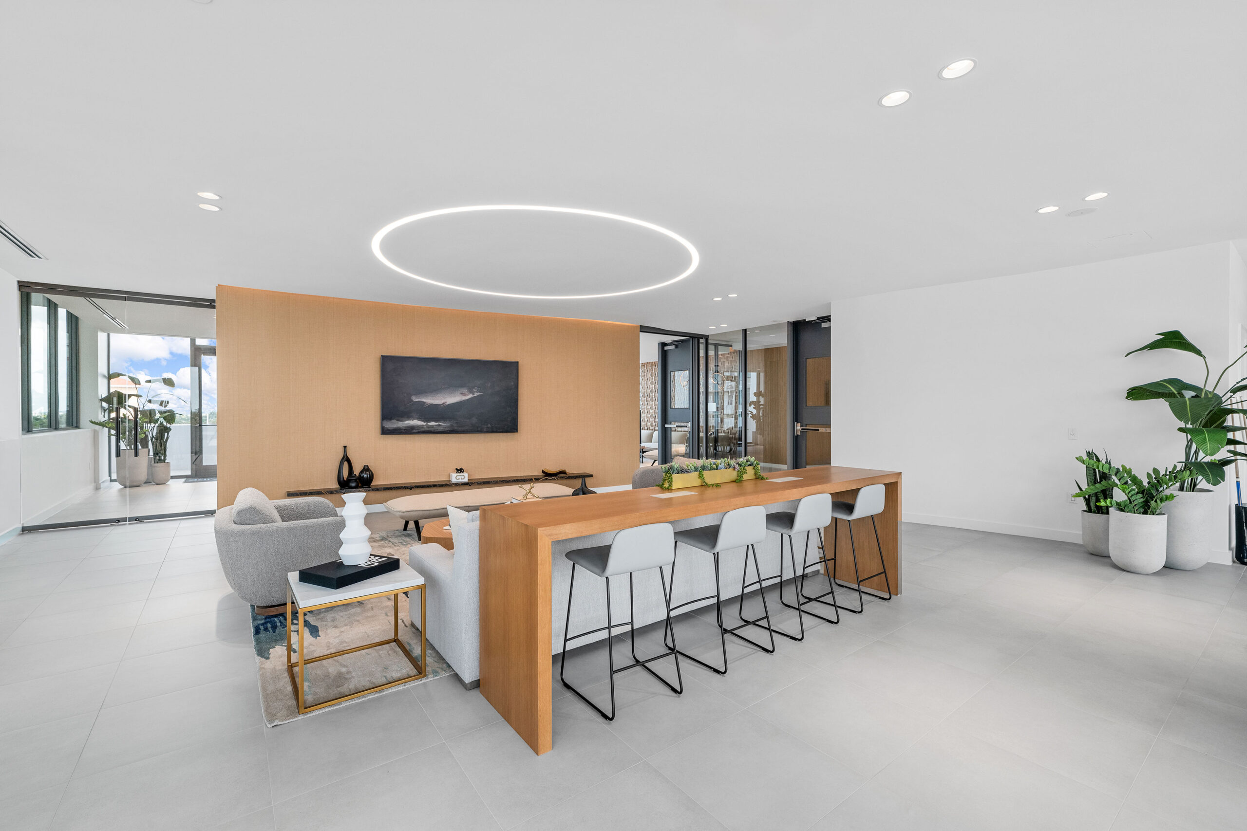 The Porte Cochère and lobby set the tone for an elevated living experience at Lumaire. Soaring ceiling heights, warm wood tones and terrazzo floors with a beaut ...more