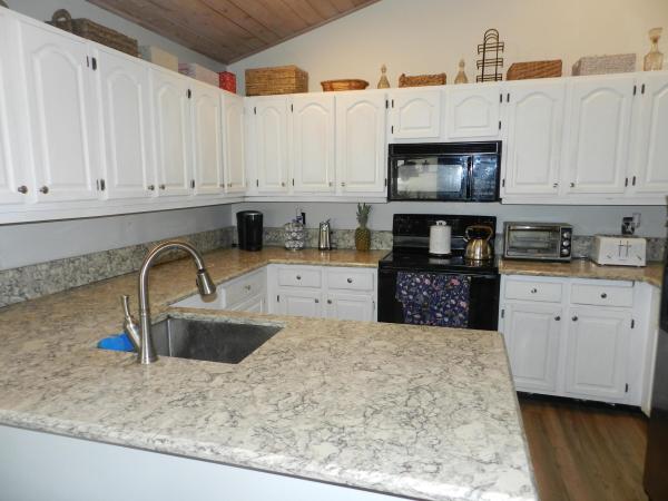 Spacious 2 bedroom plus den/office great floor plan as you enter look up at the gorgeous tounge and grove wood ceiling living room dinning, and kitchen, custom closets throughout the home also wood engineer floors new floor just installed in the kitchen. This beautiful house is wired for music even the large screened patio, which overlooks a lake plus it has a burgular alarm. As your enjoying the patio it has a blue electronic awing for comfort and shade the spectacular entrance lush landscape garden window as you enter this spacious home you will see the beautiful wood ceiling primary suite is off thf the living room white bathroom soaker tub dual vanities gorgeous custom closet private water closet bedroom has 2 windows overlooks the lake and a slider door to go to huge screen patio white kitchen cabinet granite countertop. Den has custom wall unit 2nd bedroom has custom closet in the hallway there is another custom design closet a womens dream. 2 car garage is were laundry room is. There is a door to go out to the patio the patio is paradise overlooks lake l shape screened patio it has a grill area with a beautiful blue electrical awning. A partial covered patio in case of rain electic outside