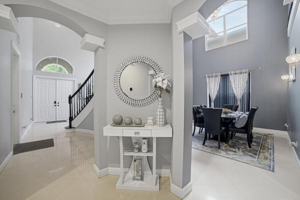 House for sale in Worthington Estates9195 Nugent Trl, West Palm Beach, FL 33411Welcome to worthington estates, an exclusive gated enclave of just 81 residences, ideally situated off west okeechobee boulevard in the heart of west palm beach. This private and picturesque community offers a rare blend of tranquility and convenience. This exceptional estate boasts approximately 4, 500 square feet under air and makes a striking first impression with a grand, designer-inspired entry featuring a sweeping custom staircase and dazzling crystal chandeliers. Thoughtfully designed for both refined entertaining and comfortable everyday living, this five-bedroom, four-and-a-half-bath residence offers an expansive and versatile layout. The main level showcases a luxurious primary suite, along with an additional oversized bedroom perfect for a home office, guest suite, or playroom. Formal living and dining spaces are complemented by soaring ceilings, while the open-concept kitchen seamlessly flows into the family room, creating an ideal gathering space. A substantial bonus room—perfect as a private media lounge or game room—features its own half bath. Elegant crown molding throughout enhances the home's sophisticated aesthetic. Upstairs, a bright and spacious loft provides additional living space, accompanied by new plank-style tile flooring throughout. The second level offers a well-appointed primary suite at the front of the home with a private balcony, two centrally located guest bedrooms, and an extraordinary owner's retreat at the rear. This expansive suite features a separate sitting area or office, dual walk-in closets, a spa-caliber marble bathroom, and a private balcony overlooking the serene backyard. Outdoors, discover your own resort-style retreat. A sparkling in-ground pool, expansive covered patio, and lush tropical landscaping create an idyllic setting for both relaxation and upscale entertaining year-round. A rare offering within a boutique community, this residence embodies the essence of luxury south florida living. Private showings available by appointment.